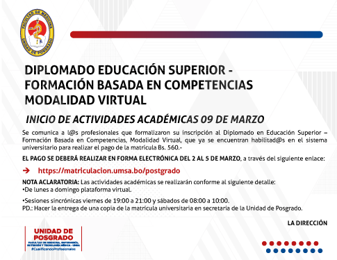 DIPLOMADO EN EDUCACIÓN SUPERIOR - FORMACIÓN BASADA EN COMPETENCIAS MODALIDAD VIRTUAL