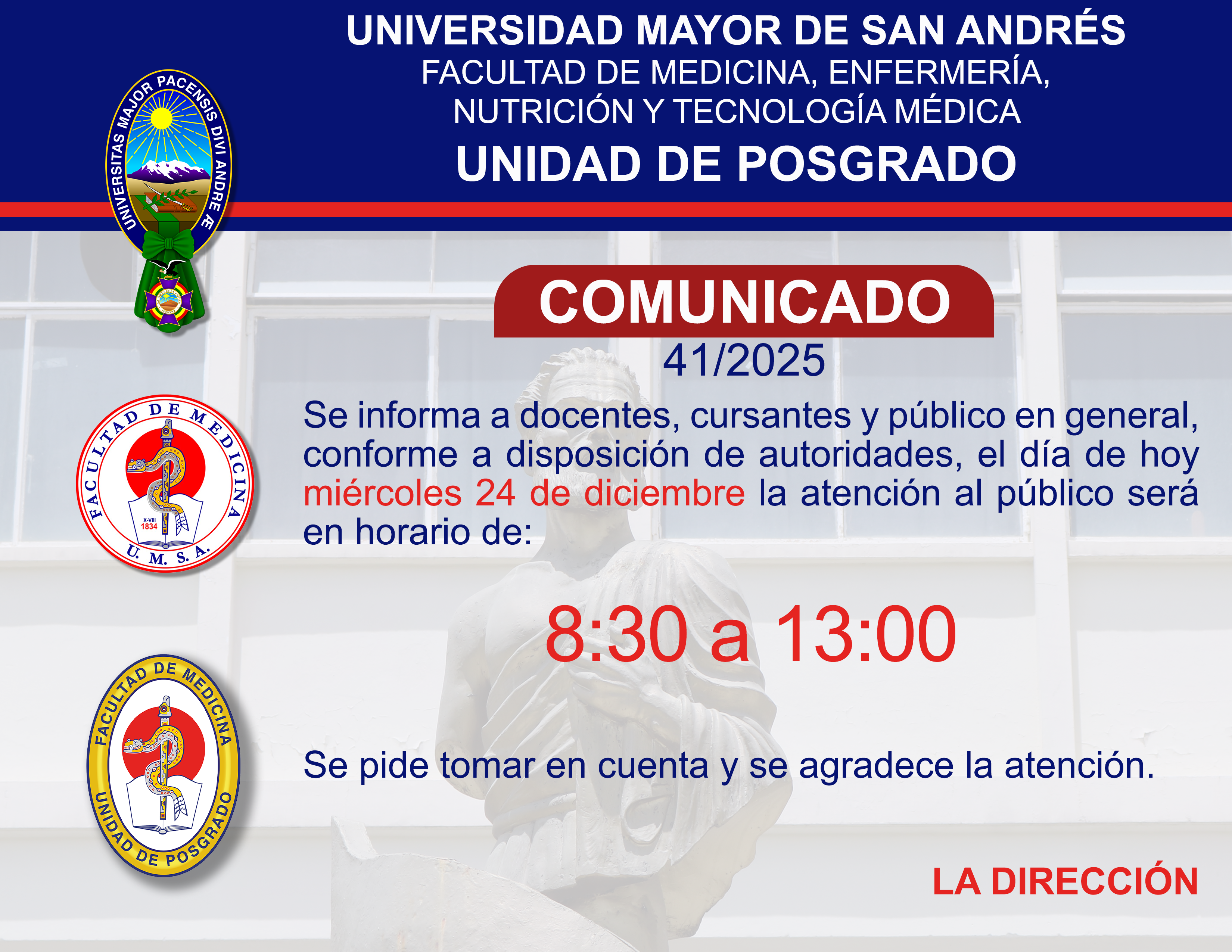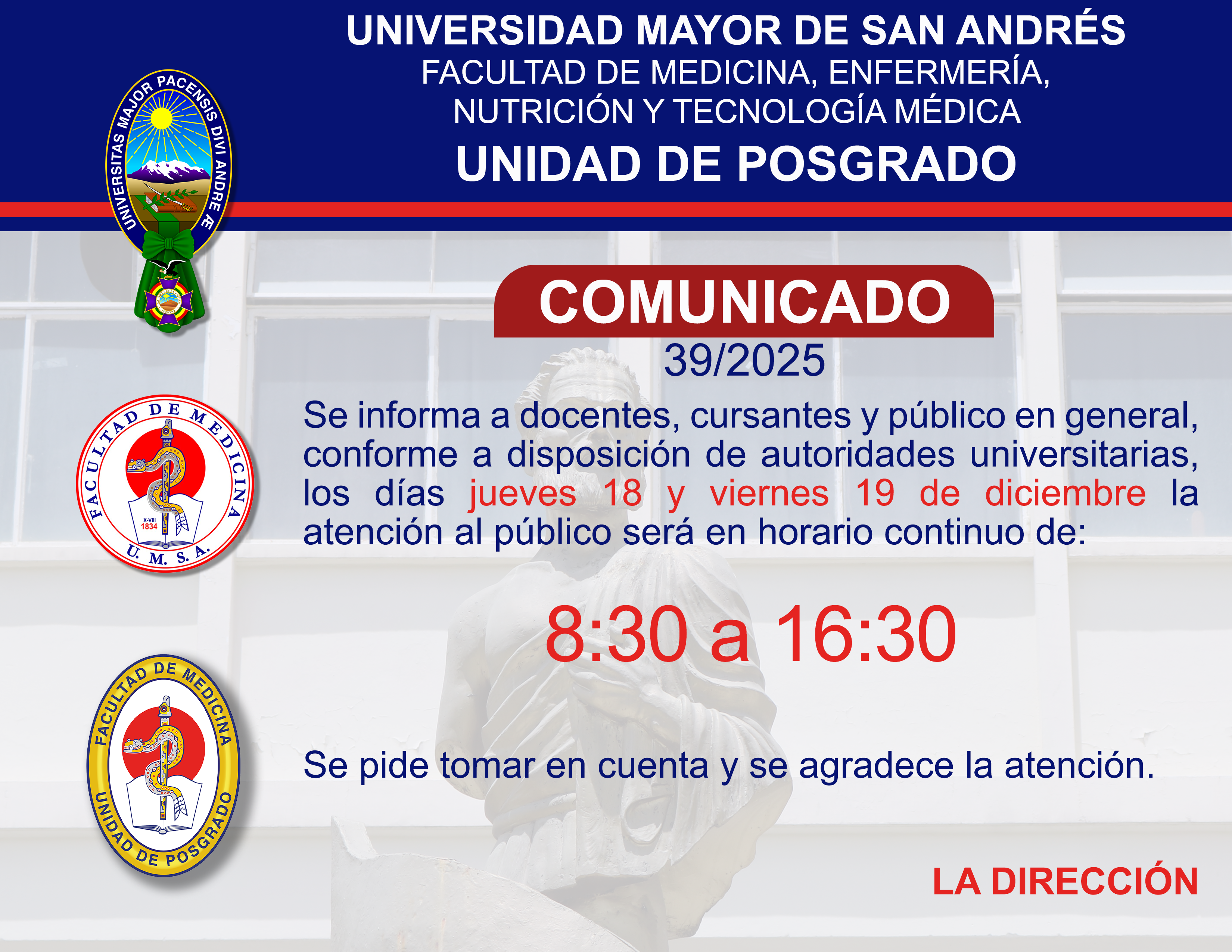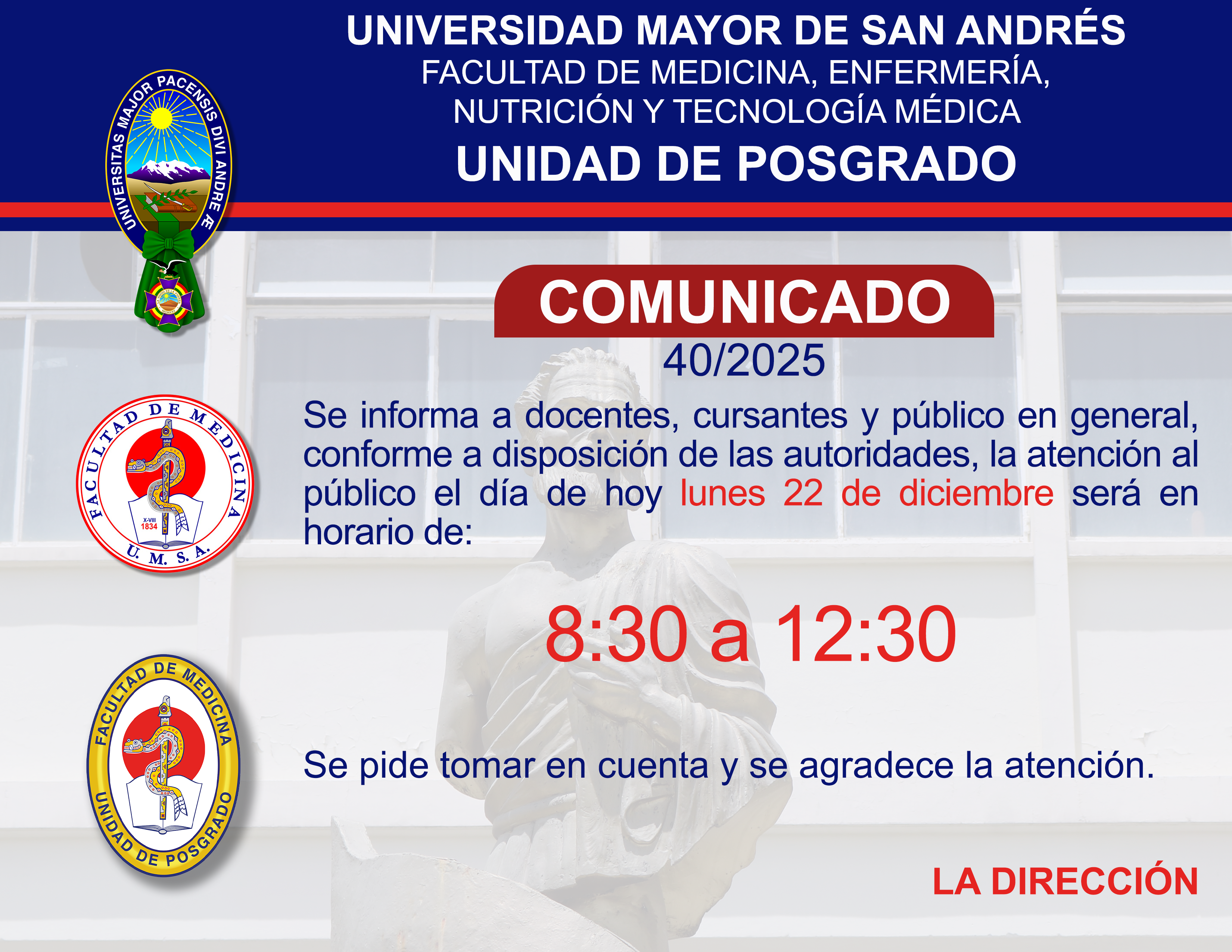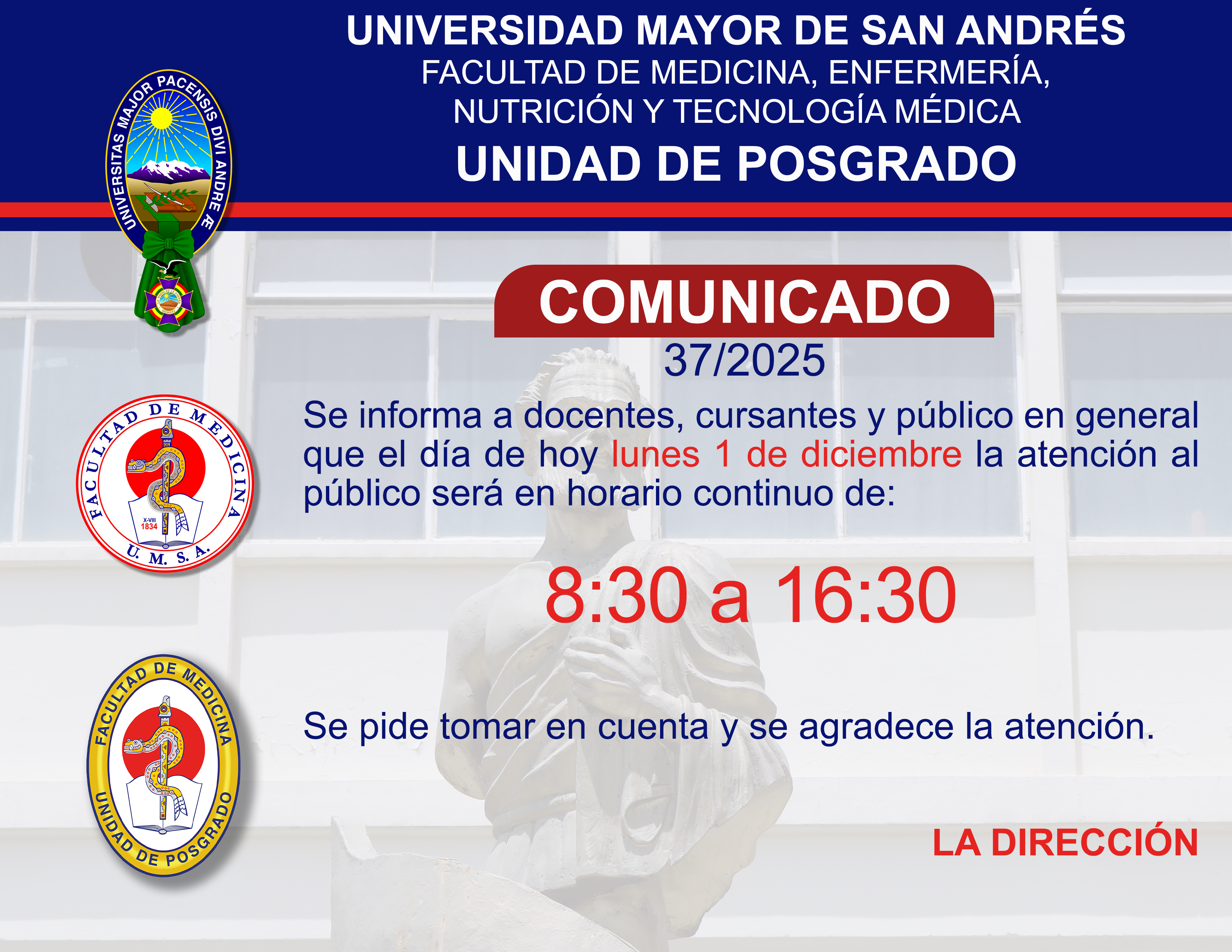 Horario de atención de 8:30 a 12:30