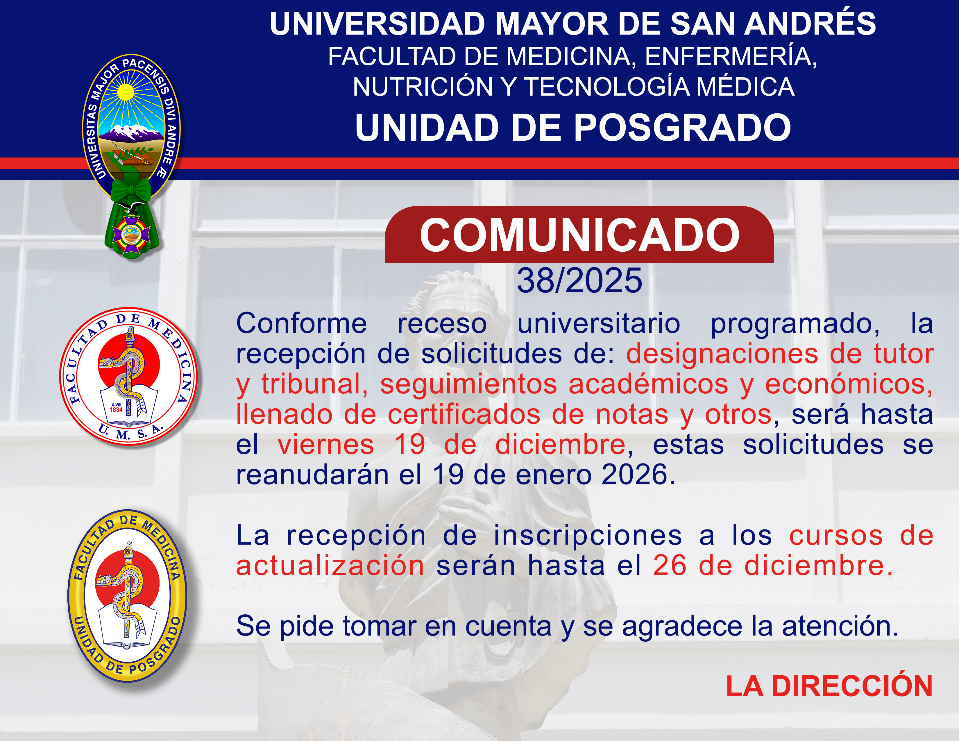 RECEPCIÓN DE SOLICITUDESHASTA EL VIERNES 19 DE DICIEMBRE