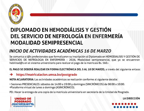DIPLOMADO EN HEMODÍALISIS Y GESTIÓN DEL SERVICIO DE NEFROLOGÍA EN ENFERMERÍAMODALIDAD SEMIPRESENCIAL