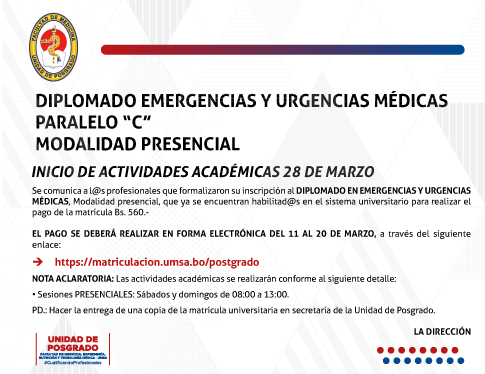 DIPLOMADO EMERGENCIAS Y URGENCIAS MÉDICAS PARALELO "C"MODALIDAD PRESENCIAL