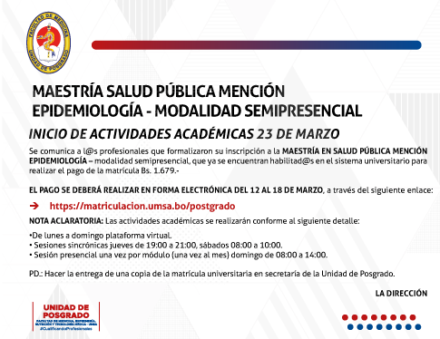 MAESTRÍA SALUD PÚBLICA MENCIÓN EPIDEMIOLOGÍAMODALIDAD SEMIPRESENCIAL