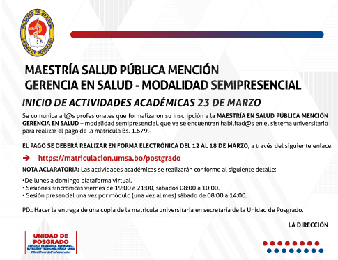 MAESTRÍA SALUD PÚBLICA MENCIÓN GERENCIA EN SALUDMODALIDAD SEMIPRESENCIAL