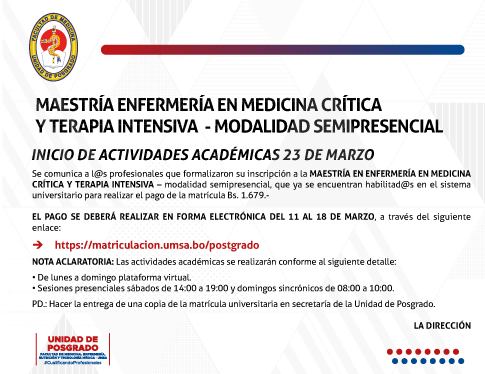 MAESTRÍA ENFERMERÍA EN MEDICINA CRÍTICA Y TERAPIA INTENSIVAMODALIDAD SEMIPRESENCIAL