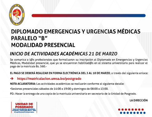 DIPLOMADO EMERGENCIAS Y URGENCIAS MÉDICAS PARALELO "B"MODALIDAD PRESENCIAL